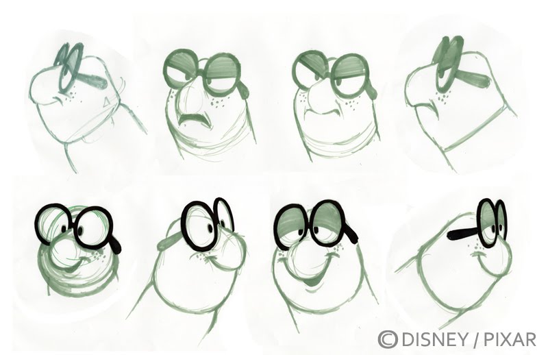 below are a few other sketches and passes at different variations of his face both happy and mean.